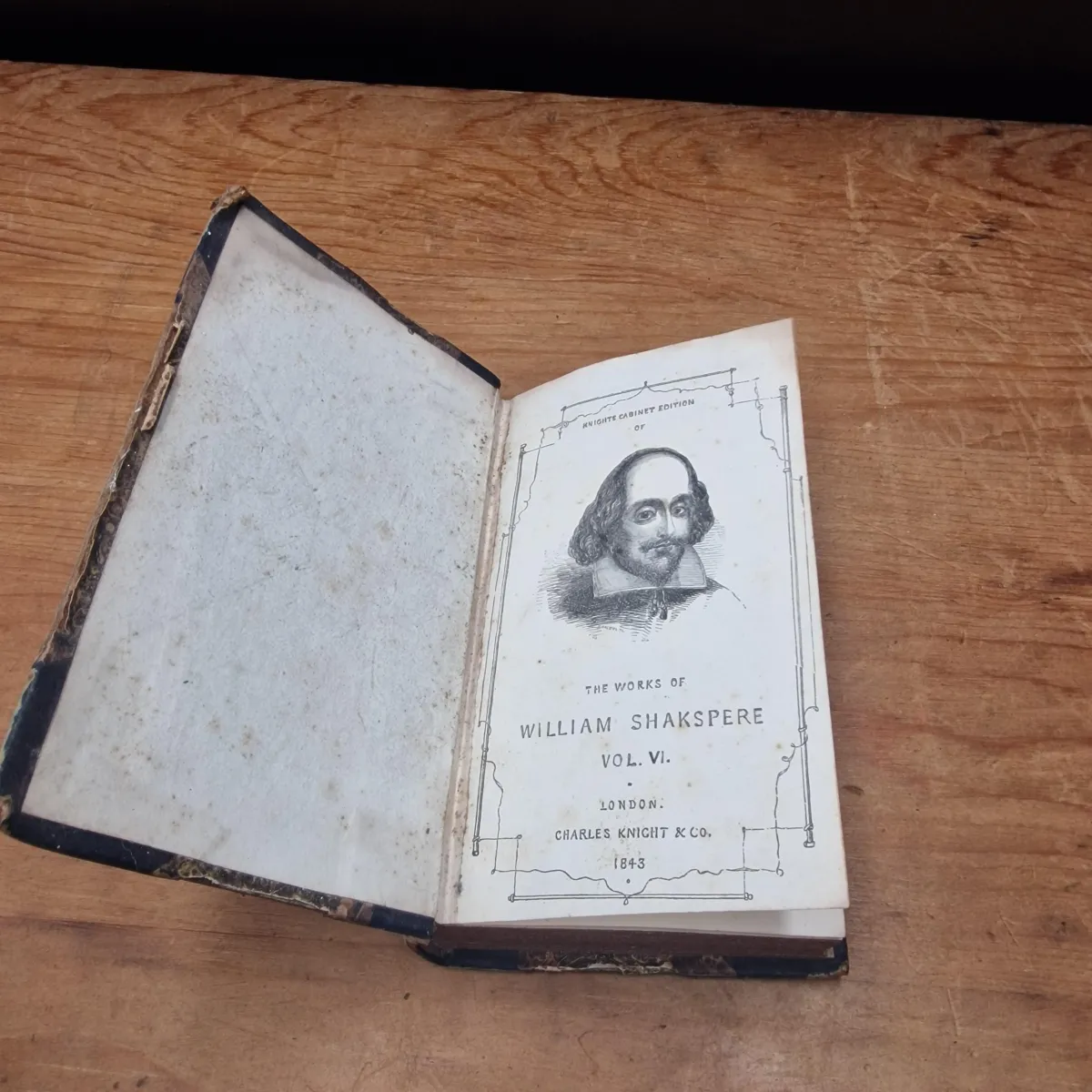 This is a mini book in a series of works by Shakspere that were published by Charles Knight in 1843. This book is over 150 years old and shows many signs of wear. However it is complete with the pages, title boards and cover still complete and bound tight. The spine has some flakeing and the book is fragile.